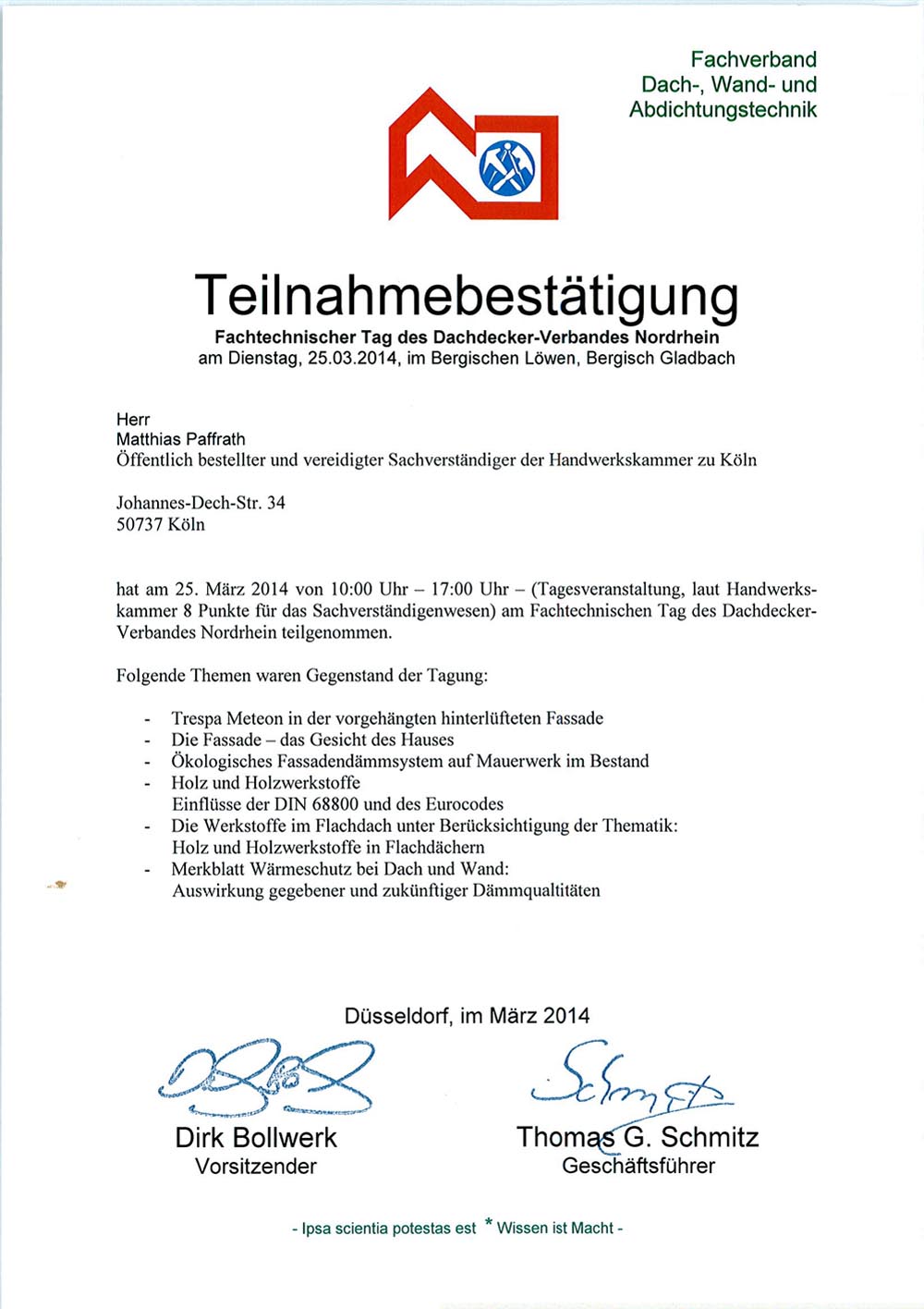 Fachtechnischer Ausschuss bei dem Dachdecker-Verband Nordrhein |